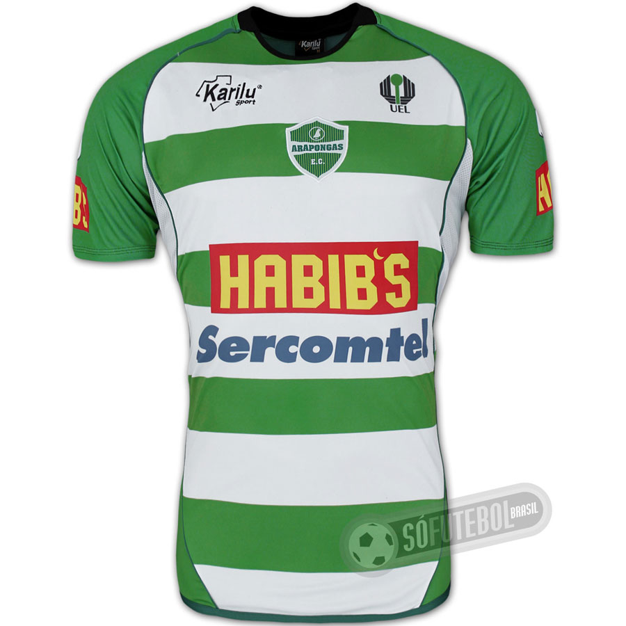 Patrocínio: Logomarca Karilu Sport no lado direito do peito. Logotipo Habib's no centro da parte frontal e nas mangas. Logotipo Sercomtel, também no centro da parte frontal. Logomarca Visocor nas costas abaixo da gola. Logotipo Compusystem nas costas acima da barra. Logomarca UEL no lado esquerdo do peito.